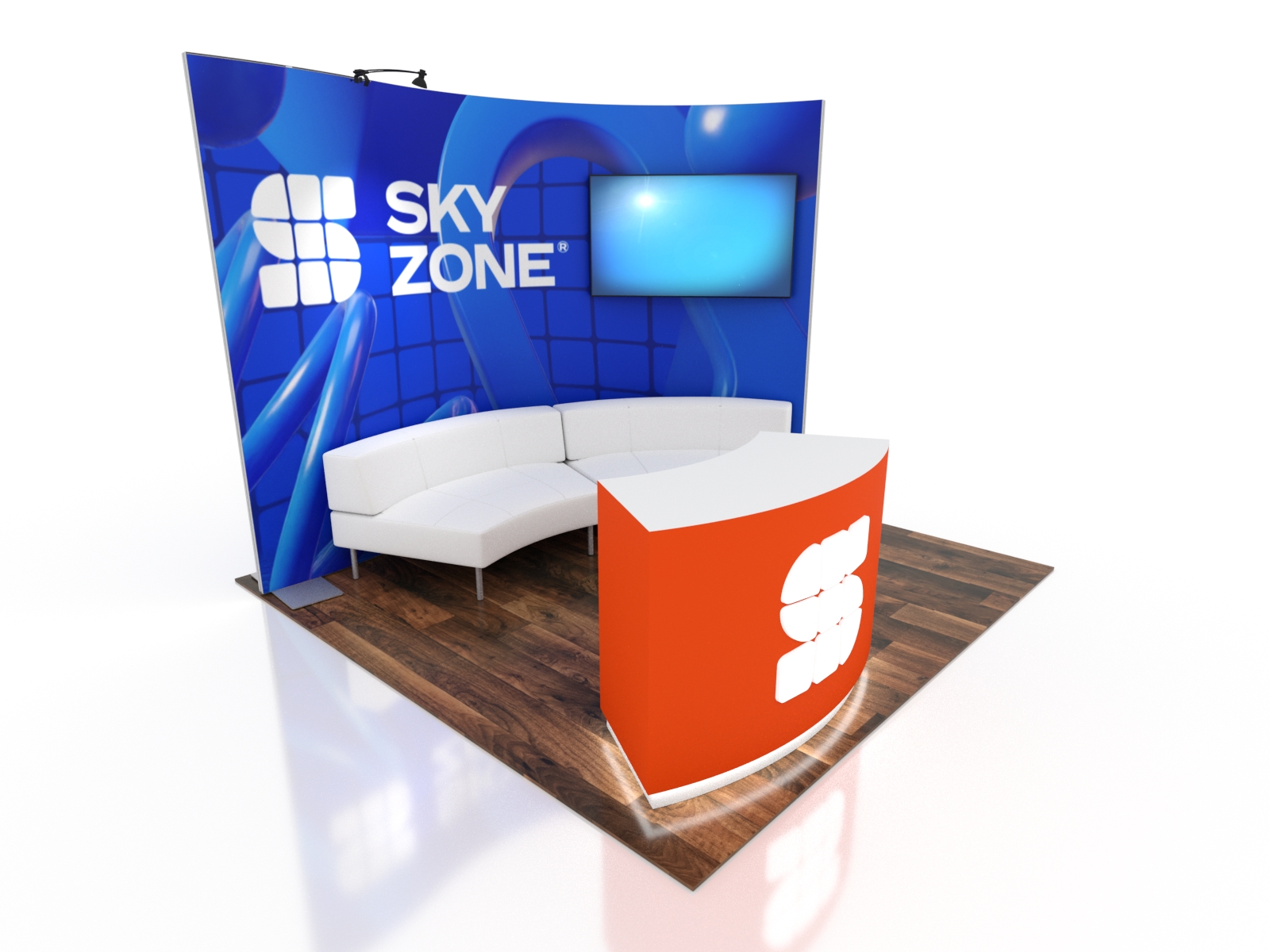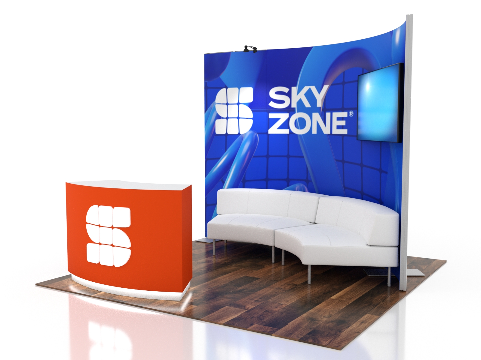 In a world of garish colors and impractical design, understated elegance stands apart in its ability to convey luxury. These exhibits transform simple curves into an inviting upscale setting with functional multimedia options. They include large monitor options, a seating area, and presentation/lounge areas. The reception counter offers ample storage and large graphics in a sweeping design that invites tradeshow attendees into your booth. Best of all, as your trade show schedule changes, the designs expand or shrink depending on your needs. Best of all with Gravitee Modular frames, assembly is fast and effortless, saving you time and money during installation and dismantle.